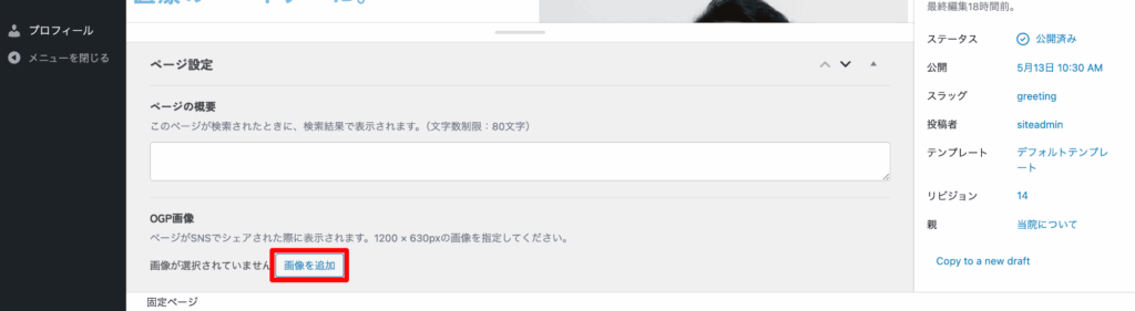 - 画面下部にある「ページ設定」>「OGP画像」から設定できます。
