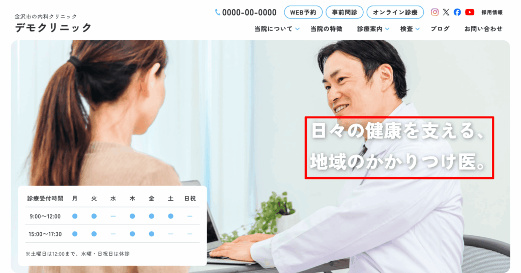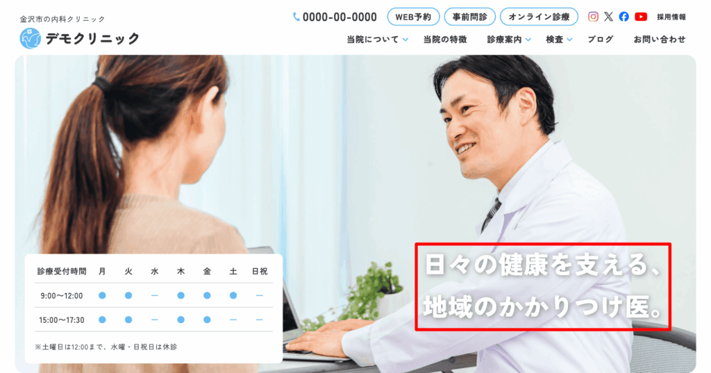 サイトのトップページの最初に表示される大きな画像(メイン画像)の上に表示されるキャッチコピーの位置を変更できます。